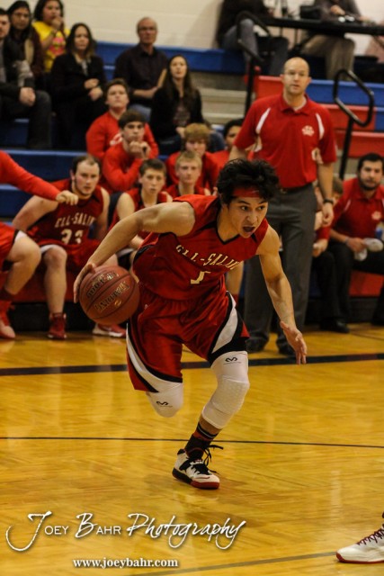 Ell-Saline Cardinal Luiz Antonio Arceo (#1) drives towards the basket during the 2A Sub-State First Round Game with the Ellinwood Eagles vs the Ell-Saline Cardinals with Ellinwood winning 59 to 37 at Ellinwood High School in Ellinwood, Kansas on March 2, 2015. (Photo: Joey Bahr, www.joeybahr.com)