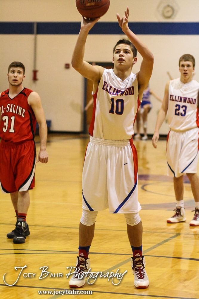Ellinwood Eagle Tyson Martinez (#10) shoots a free throw during the 2A Sub-State First Round Game with the Ellinwood Eagles vs the Ell-Saline Cardinals with Ellinwood winning 59 to 37 at Ellinwood High School in Ellinwood, Kansas on March 2, 2015. (Photo: Joey Bahr, www.joeybahr.com)
