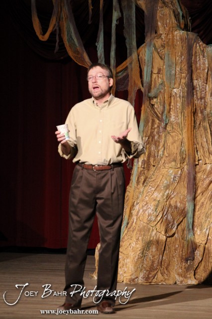 Sandy played by Doug Simmons performs during the Great Bend Community Theater’s final rehearsal of “Duck Hunter Shoots Angel” by Mitch Albom at Crest Theater in Great Bend, Kansas on April 17, 2013. (Photo: Joey Bahr, www.joeybahr.com)