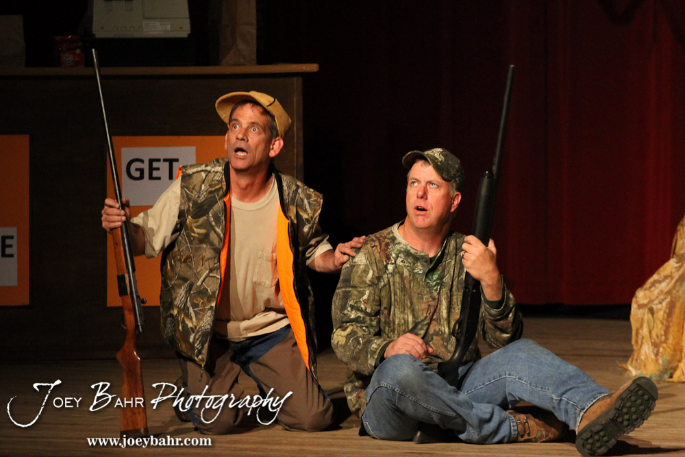 Duane played by K.B. Bell and Duwell played by Charlie Dixon perform during the Great Bend Community Theater’s final rehearsal of “Duck Hunter Shoots Angel” by Mitch Albom at Crest Theater in Great Bend, Kansas on April 17, 2013. (Photo: Joey Bahr, www.joeybahr.com)