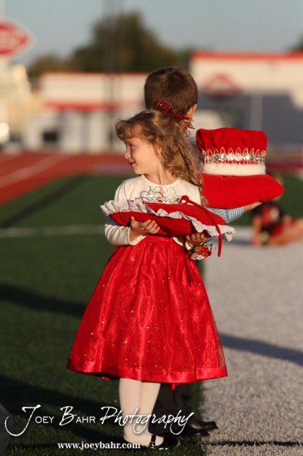 The Attendants wait for the announcement of the King and Queen during the 2013 Hoisington High School Homecoming Festivities prior to the Larned at Hoisington Football game at Elton Brown Field in Hoisington, Kansas on October 11, 2013. (Photo: Joey Bahr, www.joeybahr.com)