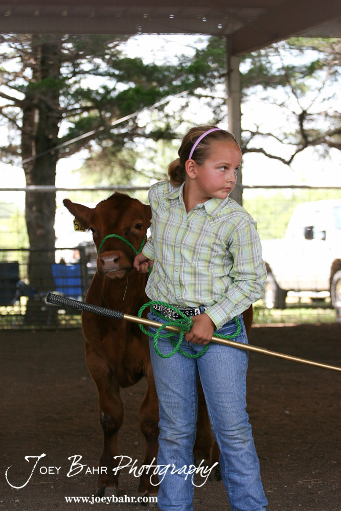 Danica Bartonek leads her bucket calf in the 4-H Beef show at the 2011 Rush County Fair in LaCrosse, Kansas on Friday, August 5, 2011.
