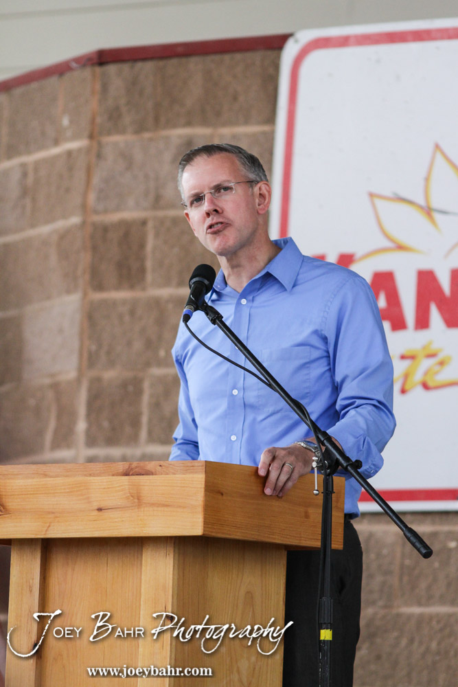 State Representative Paul Davis speaks during the WIBW 2014 Kansas State Fair Gubernatorial debate between Governor Sam Brownback and State Represtentative Paul Davis at Bretz-Young Injury Lawyers Arena on the Kansas State Fairgrounds in Hutchinson, Kansas on September 6, 2014. (Photo: Joey Bahr, www.joeybahr.com)