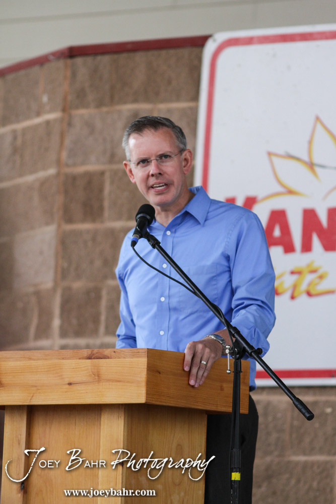 State Representative Paul Davis speaks during the WIBW 2014 Kansas State Fair Gubernatorial debate between Governor Sam Brownback and State Represtentative Paul Davis at Bretz-Young Injury Lawyers Arena on the Kansas State Fairgrounds in Hutchinson, Kansas on September 6, 2014. (Photo: Joey Bahr, www.joeybahr.com)