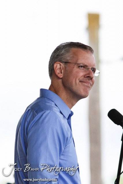 State Representative Paul Davis watches Governor Sam Brownback during the WIBW 2014 Kansas State Fair Gubernatorial debate between Governor Sam Brownback and State Represtentative Paul Davis at Bretz-Young Injury Lawyers Arena on the Kansas State Fairgrounds in Hutchinson, Kansas on September 6, 2014. (Photo: Joey Bahr, www.joeybahr.com)