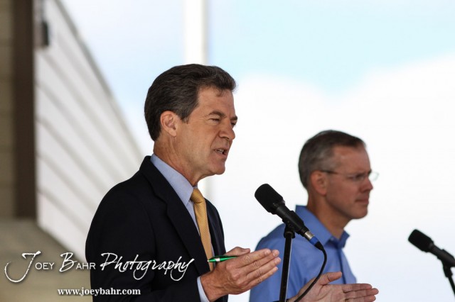 Governor Sam Brownback responds to a question during the WIBW 2014 Kansas State Fair Gubernatorial debate between Governor Sam Brownback and State Represtentative Paul Davis at Bretz-Young Injury Lawyers Arena on the Kansas State Fairgrounds in Hutchinson, Kansas on September 6, 2014. (Photo: Joey Bahr, www.joeybahr.com)
