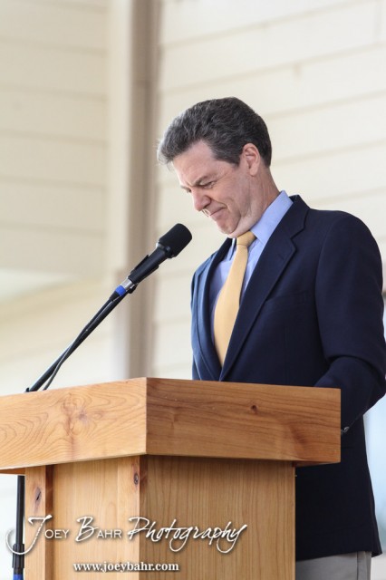 Governor Sam Brownback reacts to a comment from State Representative Paul Davis during the WIBW 2014 Kansas State Fair Gubernatorial debate between Governor Sam Brownback and State Represtentative Paul Davis at Bretz-Young Injury Lawyers Arena on the Kansas State Fairgrounds in Hutchinson, Kansas on September 6, 2014. (Photo: Joey Bahr, www.joeybahr.com)