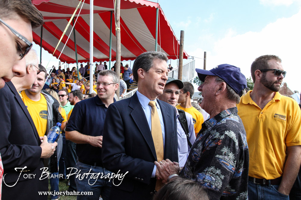 Governor Sam Brownback talks with supporters following the WIBW 2014 Kansas State Fair Gubernatorial debate between Governor Sam Brownback and State Represtentative Paul Davis at Bretz-Young Injury Lawyers Arena on the Kansas State Fairgrounds in Hutchinson, Kansas on September 6, 2014. (Photo: Joey Bahr, www.joeybahr.com)