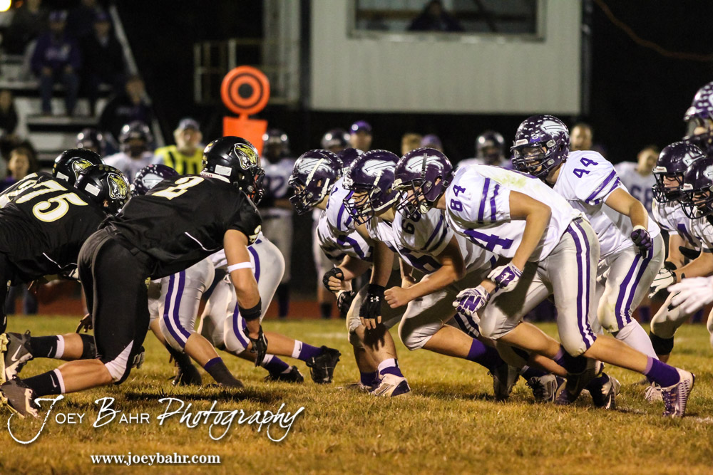 The Meade Buffalo Offensive Line fires off the ball during the KSHSAA Class 2-1A Regional Football game with Meade at LaCrosse with LaCrosse winning 34 to 0 at Bill Schoendaller Athletic Field in LaCrosse, Kansas on November 7, 2014. (Photo: Joey Bahr, www.joeybahr.com)