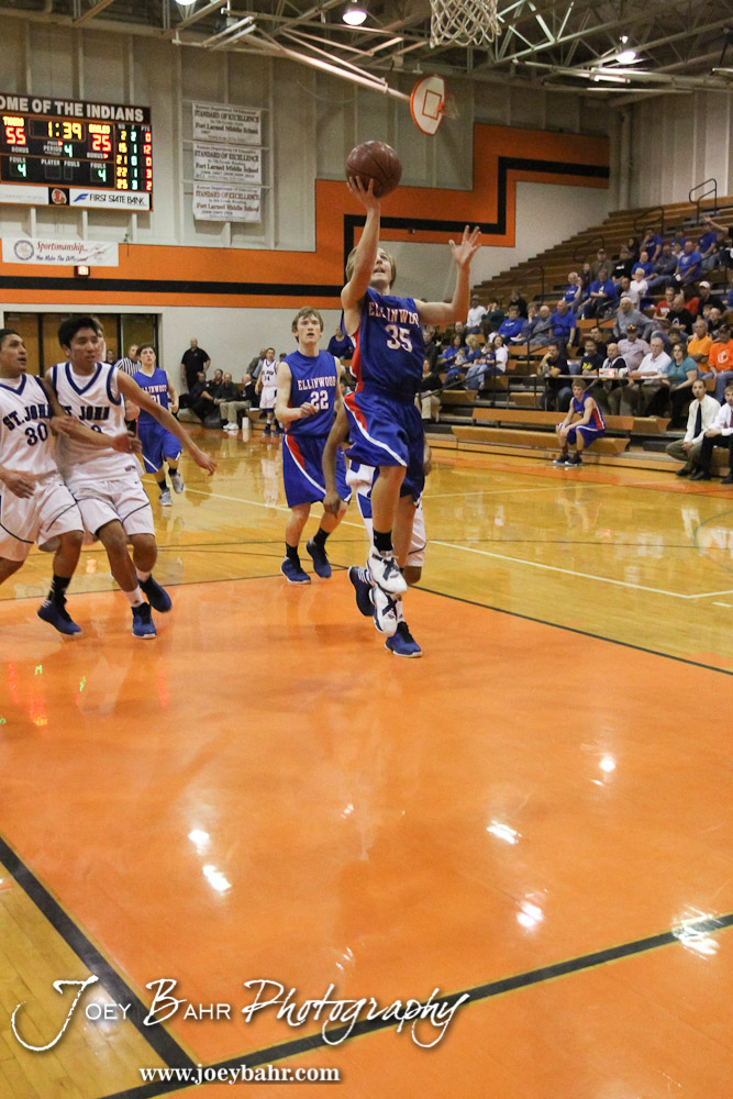 Ellinwood Eagle Gavin Vink (#35) goes up for a layup during the Ellinwood Eagles versus St. John Tigers First Round Game with St. John winning 55 to 26 at the 6th Annual Keady Basketball Classic held at Larned Middle School in Larned, Kansas on December 4, 2012. (Photo: Joey Bahr, www.joeybahr.com)