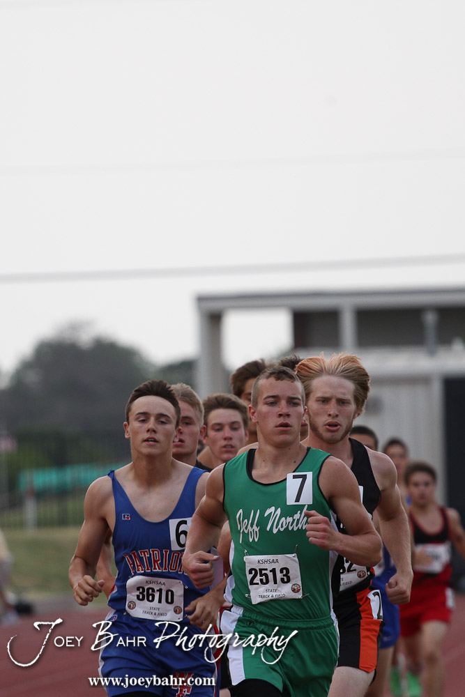 Runners in the Class 3A Boys 3200 Meter Run complete a lap during the 2012 KSHSAA State Track and Field Championship at Cessna Stadium on the campus of Wichita State University in Wichita, Kansas on May 25, 2012. (Photo: Joey Bahr, www.joeybahr.com)