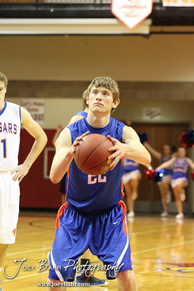 Ellinwood Eagle Tanner Swank (#22) shoots a free throw during the Otis-Bison versus Ellinwood First Round game with Ellinwood winning 47 to 45 at the 2013 Hoisington Winter Jam held at Hoisington Activity Center in Hoisington, Kansas on January 14, 2013. (Photo: Joey Bahr, www.joeybahr.com)