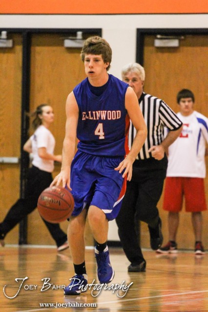 Ellinwood Eagle Marc Waite (#4) dribbles the ball down the court during the Opening Round of the Seventh Annual Keady Basketball Classic matchup between the Ellinwood Eagles and the St. John Tigers with St. John winning 76 to 23 at Larned Middle School in Larned, Kansas on December 9, 2013. (Photo: Joey Bahr, www.joeybahr.com)