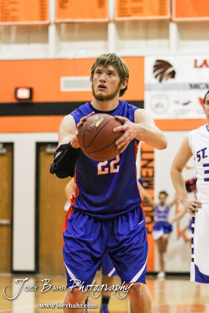 Ellinwood Eagle Tanner Swank (#22) shoots a free throw attempt during the Opening Round of the Seventh Annual Keady Basketball Classic matchup between the Ellinwood Eagles and the St. John Tigers with St. John winning 76 to 23 at Larned Middle School in Larned, Kansas on December 9, 2013. (Photo: Joey Bahr, www.joeybahr.com)