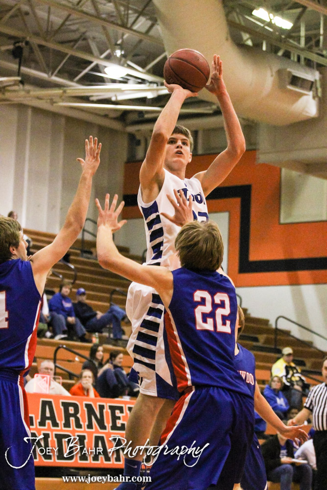 St. John Tiger Dean Wade (#32) takes a shot during the Opening Round of the Seventh Annual Keady Basketball Classic matchup between the Ellinwood Eagles and the St. John Tigers with St. John winning 76 to 23 at Larned Middle School in Larned, Kansas on December 9, 2013. (Photo: Joey Bahr, www.joeybahr.com)