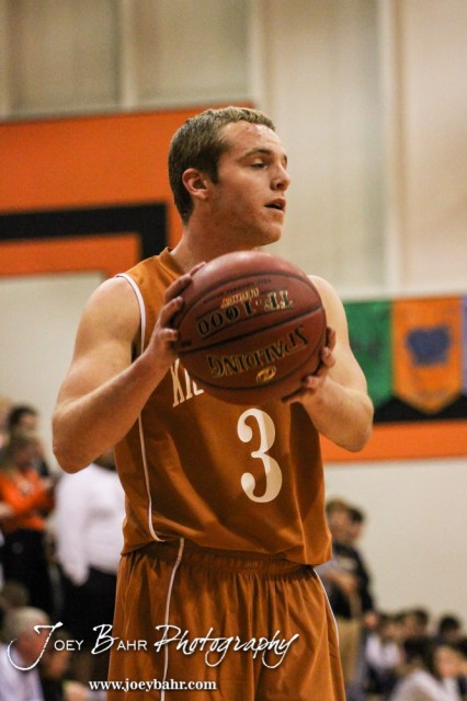 Kiowa County Maverick Trever Powell (#3) catches a pass during the Opening Round of the Seventh Annual Keady Basketball Classic matchup between the Kiowa County Mavericks and the Larned Indians with Larned winning 67 to 40 at Marvin Webster Court in Larned, Kansas on December 10, 2013. (Photo: Joey Bahr, www.joeybahr.com)