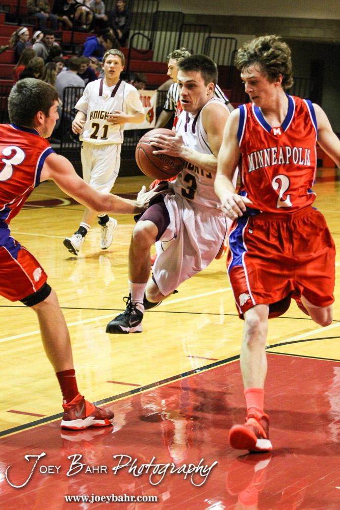 during the 2014 Hoisington Cardinal Winter Jam Boys Championship basketball game with the Minneapolis Lions versus the Victoria Knights with Minneapolis winning 57 to 47