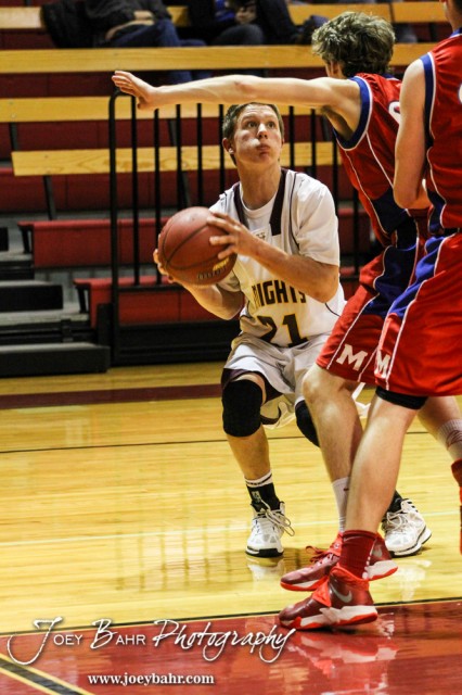 Victoria Knight Bryan Dome (#21) looks to take a shot during the 2014 Hoisington Cardinal Winter Jam Boys Championship basketball game with the Minneapolis Lions versus the Victoria Knights with Minneapolis winning 57 to 47 at the Hoisington Activity Center in Hoisington, Kansas on January 25, 2014. (Photo: Joey Bahr, www.joeybahr.com)