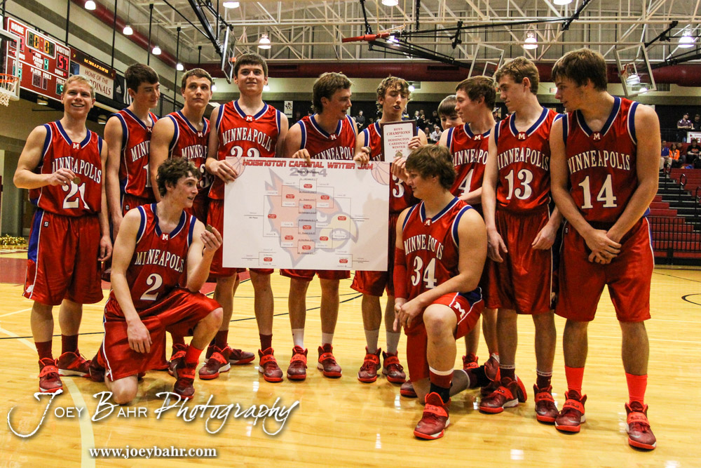 during the 2014 Hoisington Cardinal Winter Jam Boys Championship basketball game with the Minneapolis Lions versus the Victoria Knights with Minneapolis winning 57 to 47