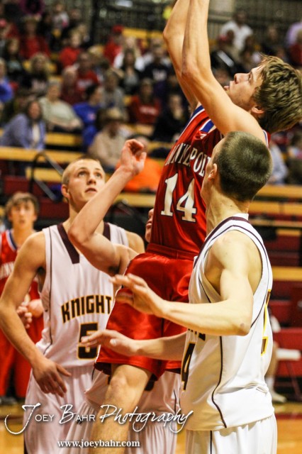 during the 2014 Hoisington Cardinal Winter Jam Boys Championship basketball game with the Minneapolis Lions versus the Victoria Knights with Minneapolis winning 57 to 47