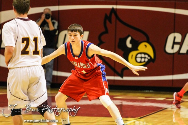 during the 2014 Hoisington Cardinal Winter Jam Boys Championship basketball game with the Minneapolis Lions versus the Victoria Knights with Minneapolis winning 57 to 47