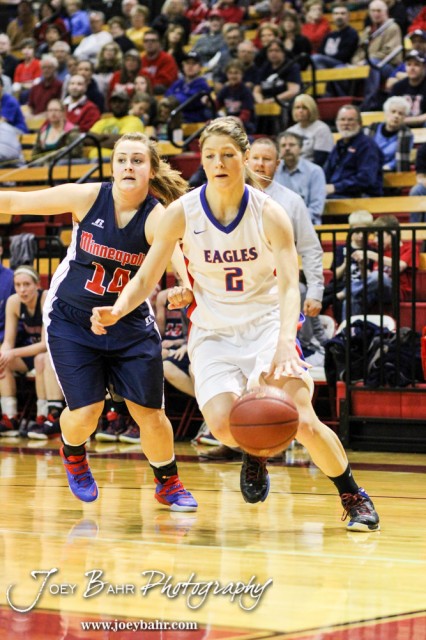 during the 2014 Hoisington Cardinal Winter Jam Girls Championship basketball game with the Ellinwood Lady Eagles versus the Minneapolis Lady Lions with Ellinwood winning 57 to 48