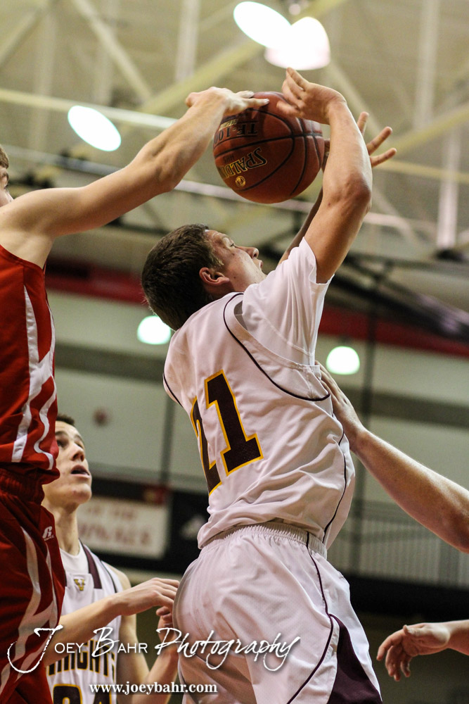 Victoria Knight Bryan Dome (#21) goes up for a layup as the ball is stripped during the 2014 Hoisington Cardinal Winter Jam First Round basketball game with the Victoria Knights versus the Hoisington Cardinals with Hoisington winning 68 to 54 in Hoisington Activity Center in Hoisington, Kansas on January 20, 2014. (Photo: Joey Bahr, www.joeybahr.com)