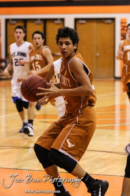 during the Seventh Annual Keady Basketball Classic First Round game between the St. John Tigers and the Kiowa County Mavericks with St. John winning 74 to 30
