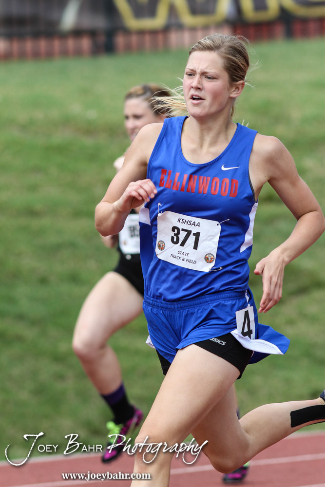 Brooke Panning of Ellinwood runs in the 2A Girls 400 Meter Dash Preliminaries during the First Day of the 2014 KSHSAA State Track Meet at Cessna Stadium on the campus of Wichita State University in Wichita, Kansas on May 30, 2014. (Photo: Joey Bahr, www.joeybahr.com)