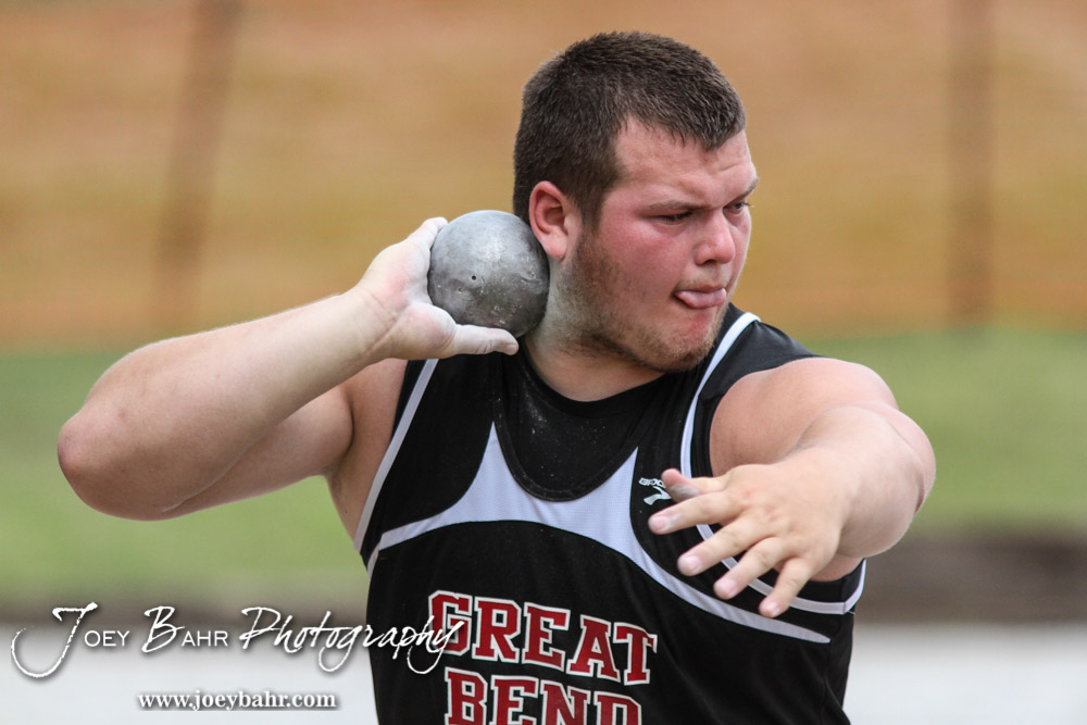 Jayce Brack of Great Bend begins to throw in the 5A Boys Shot Put during the Second Day of the 2014 KSHSAA State Track Meet at Cessna Stadium on the campus of Wichita State University in Wichita, Kansas on May 31, 2014. (Photo: Joey Bahr, www.joeybahr.com)