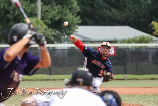 Buhler Nationals #2 Josh Salazar throws a pitch. The Arkansas City Grays defeated the Buhler Nationals 10 to 5 to win the American Legion Class A Baseball State Tournament Championship at the Great Bend Sports Complex in Great Bend, Kansas on July 24, 2016. (Photo: Joey Bahr, www.joeybahr.com)undefined