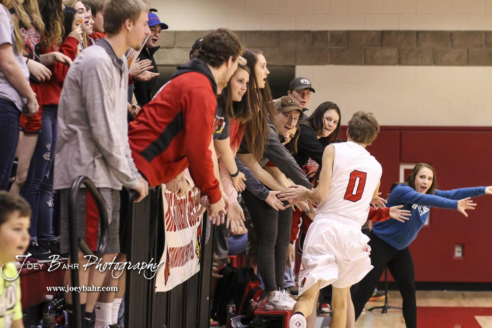 Hoisington Cardinal #0 Drew Nicholson greets fans during player introductions. The Hoisington Cardinals defeated the Pratt Greenbacks by a score of 47 to 41 in the Boys Championship game of the 2018 Hoisington Winter Jam at the Hoisington Activity Center in Hoisington, Kansas on January 20, 2018. (Photo: Joey Bahr, www.joeybahr.com)undefined