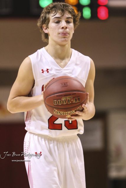 Hoisington Cardinal #23 Chris Boese shoots a free throw attempt. The Hoisington Cardinals defeated the Pratt Greenbacks by a score of 47 to 41 in the Boys Championship game of the 2018 Hoisington Winter Jam at the Hoisington Activity Center in Hoisington, Kansas on January 20, 2018. (Photo: Joey Bahr, www.joeybahr.com)undefined