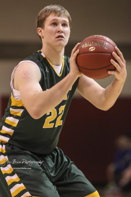 Pratt Greenback #22 Jarrett Bates shoots a free throw attempt. The Hoisington Cardinals defeated the Pratt Greenbacks by a score of 47 to 41 in the Boys Championship game of the 2018 Hoisington Winter Jam at the Hoisington Activity Center in Hoisington, Kansas on January 20, 2018. (Photo: Joey Bahr, www.joeybahr.com)undefined