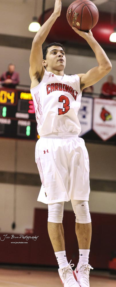 Hoisington Cardinal #3 Xavier Robinson pulls up for a jump shot. The Hoisington Cardinals defeated the Pratt Greenbacks by a score of 47 to 41 in the Boys Championship game of the 2018 Hoisington Winter Jam at the Hoisington Activity Center in Hoisington, Kansas on January 20, 2018. (Photo: Joey Bahr, www.joeybahr.com)undefined