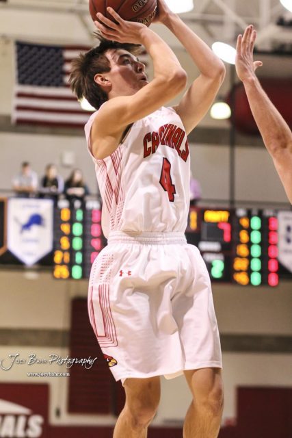 Hoisington Cardinal #4 Mason Haxton shoots a jump shot. The Hoisington Cardinals defeated the Pratt Greenbacks by a score of 47 to 41 in the Boys Championship game of the 2018 Hoisington Winter Jam at the Hoisington Activity Center in Hoisington, Kansas on January 20, 2018. (Photo: Joey Bahr, www.joeybahr.com)undefined