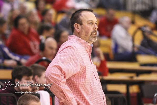 Hoisington Cardinal Head Coach Kyle Haxton watches a play develop. The Hoisington Cardinals defeated the Otis-Bison Cougars by a score of 58 to 46 in the Semi-Final of the 2018 Hoisington Winter Jam at the Hoisington Activity Center in Hoisington, Kansas on January 19, 2018. (Photo: Joey Bahr, www.joeybahr.com)undefined