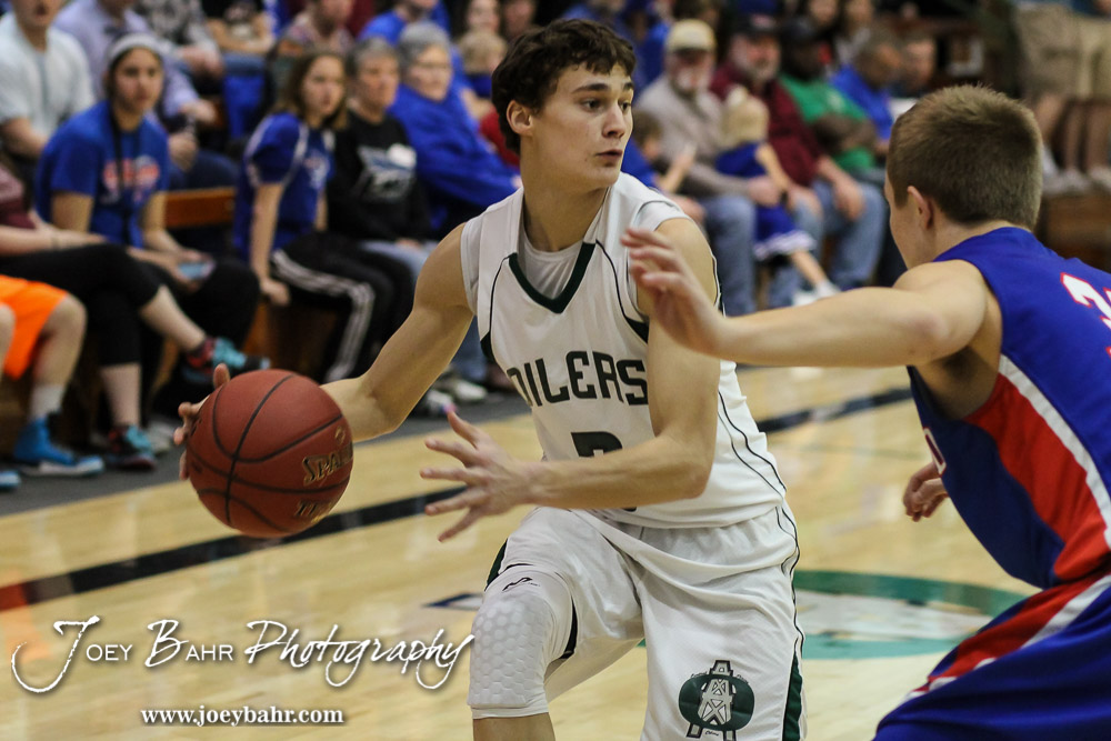 during the 2A Sub-State Championship Game with the Central Plains Oilers and the Ellinwood Eagles with Central Plains winning 62 to 26 at Central Plains High School in Claflin, Kansas on March 7, 2015. (Photo: Joey Bahr, www.joeybahr.com)