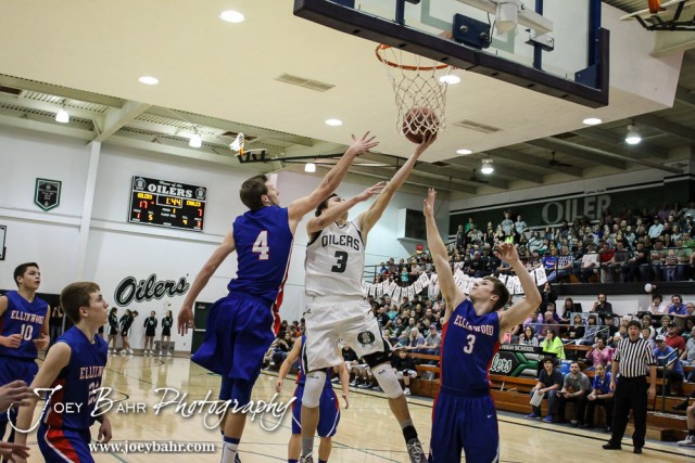 during the 2A Sub-State Championship Game with the Central Plains Oilers and the Ellinwood Eagles with Central Plains winning 62 to 26 at Central Plains High School in Claflin, Kansas on March 7, 2015. (Photo: Joey Bahr, www.joeybahr.com)