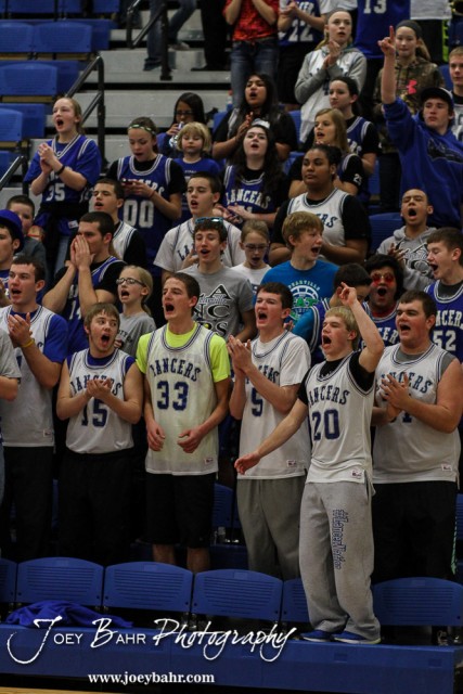 The Spearville Student Section cheers on the team during the 2A Sub-State First Round Game with the Spearville Lady Lancers vs the Kinsley Lady Coyotes with Spearville winning 66 to 53 at Spearville High School in Spearville, Kansas on March 3, 2015. (Photo: Joey Bahr, www.joeybahr.com)