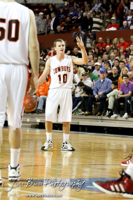 Collin Sexton (#10) of the Abilene Cowboys calls out a play against the Fort Scott Tigers in the 2012 Class 4A Boys State Championship Quarterfinals Game at Salina Bicentennial Center in Salina, Kansas on March 8, 2012. Photo: Joey Bahr