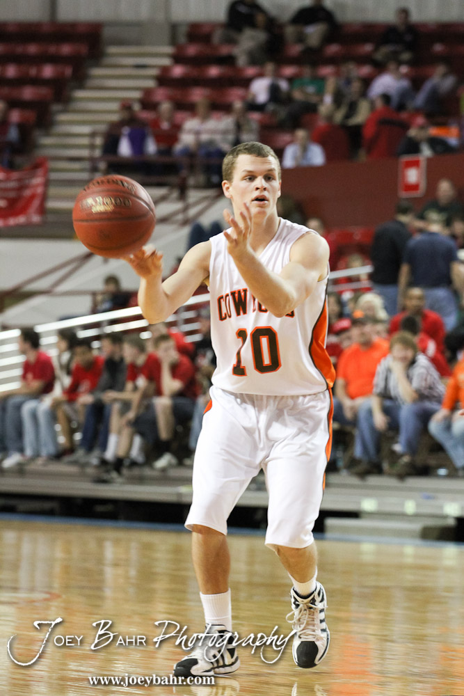 Abilene Cowboy Collin Sexton (#10) passes the basketball to a teammate in the 2012 Class 4A Boys State Championship Quarterfinals Game against the Fort Scott Tigers at Salina Bicentennial Center in Salina, Kansas on March 8, 2012. Photo: Joey Bahr