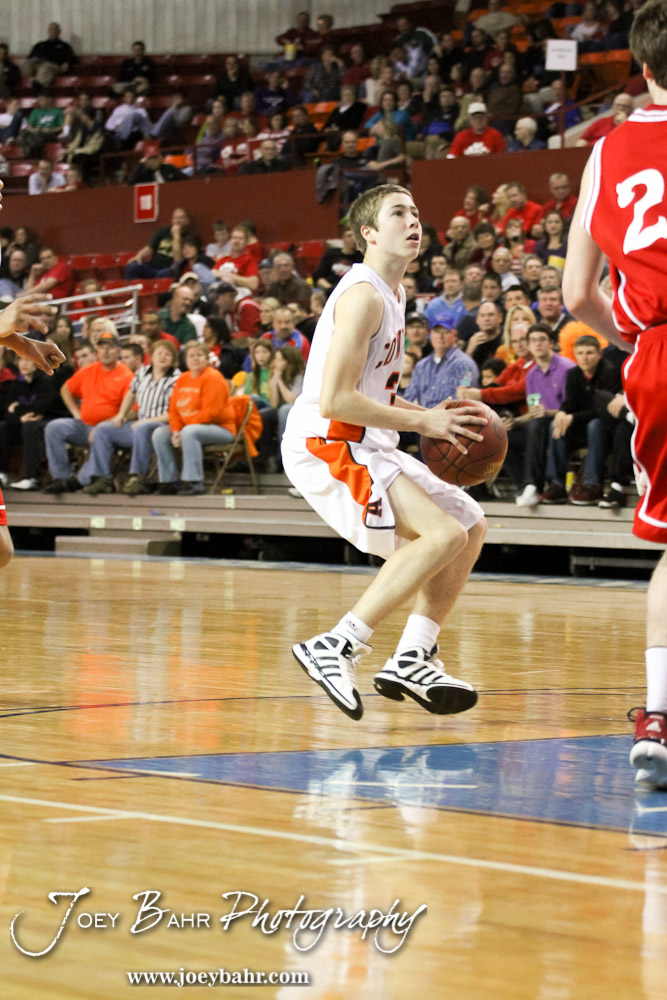 Matthew Barlow (#3) of the Abilene Cowboys jumps towards the lane against the Fort Scott Tigers in the 2012 Class 4A Boys State Championship Quarterfinals Game at Salina Bicentennial Center in Salina, Kansas on March 8, 2012. Photo: Joey Bahr