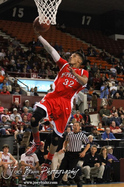 Travell Robinson (#32) of the McPherson Bullpups goes up for a layup against the Ottawa Cyclones in the 2012 Class 4A Boys State Championship Quarterfinals Game at Salina Bicentennial Center in Salina, Kansas on March 8, 2012. Photo: Joey Bahr