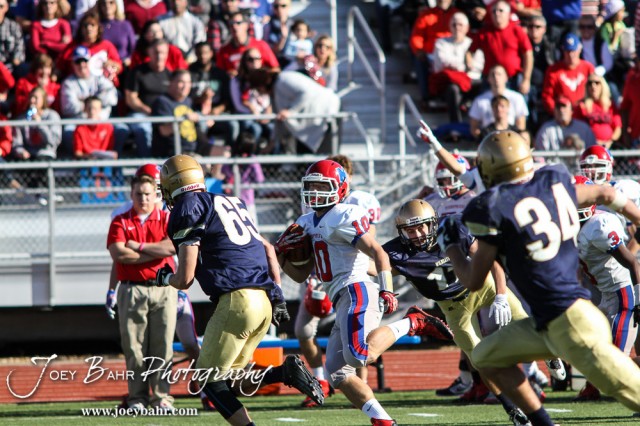 during the KSHSAA Class 4A Division I State Championship Game between Hayden High School of Topeka and Bishop Miege High School of Shawnee Mission at Chuck Lower Field at USD 501 Topeka Public Schools’ Hummer Sports Park in Topeka, Kansas on November 29, 2014. (Photo: Joey Bahr, www.joeybahr.com)