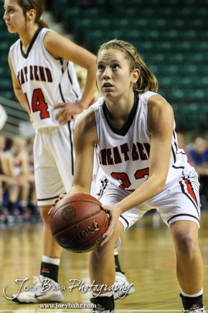 Great Bend Lady Panther McKenna Mauler (#22) prepares to shoot a free throw during the KSHSAA Class 5A Girls Basketball Quarterfinal between the Great Bend Lady Panthers and the Seaman Lady Vikings with Great Bend winning 60 to 46 at the Kansas Expocentre’s Landon Arena in Topeka, Kansas on March 13, 2014. (Photo: Joey Bahr, www.joeybahr.com)