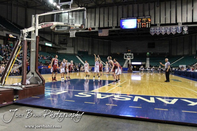 Great Bend Lady Panther Tarynn Stueder (#23) shoots a free throw during the KSHSAA Class 5A Girls Basketball Quarterfinal between the Great Bend Lady Panthers and the Seaman Lady Vikings with Great Bend winning 60 to 46 at the Kansas Expocentre’s Landon Arena in Topeka, Kansas on March 13, 2014. (Photo: Joey Bahr, www.joeybahr.com)