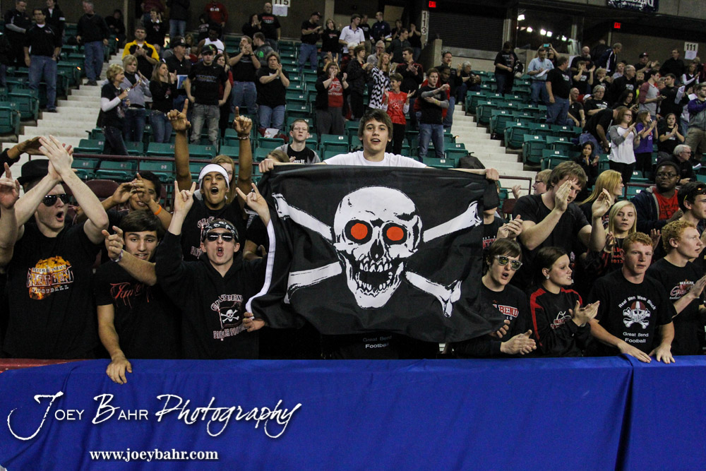Great Bend High School students celebrate the victory following the KSHSAA Class 5A Girls Basketball Quarterfinal between the Great Bend Lady Panthers and the Seaman Lady Vikings with Great Bend winning 60 to 46 at the Kansas Expocentre’s Landon Arena in Topeka, Kansas on March 13, 2014. (Photo: Joey Bahr, www.joeybahr.com)