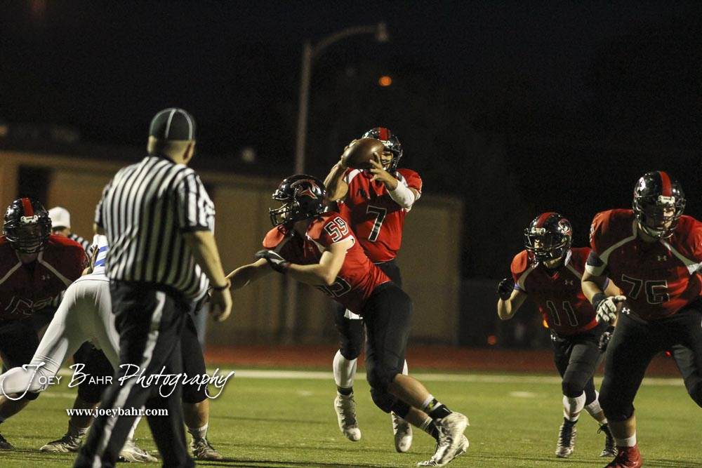 Great Bend Panther Jacob Murray (#7) pulls in a high snap. The Great Bend Panthers defeated the Andover Trojans in the KSHSAA Class 5A Regional playoff game with a score of 16 to 7 at Memorial Stadium in Great Bend, Kansas on November 4, 2016. (Photo: Joey Bahr, www.joeybahr.com)undefined