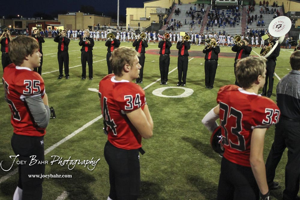 The Great Bend High School Jazz Band plays the National Anthem. The Great Bend Panthers defeated the Andover Trojans in the KSHSAA Class 5A Regional playoff game with a score of 16 to 7 at Memorial Stadium in Great Bend, Kansas on November 4, 2016. (Photo: Joey Bahr, www.joeybahr.com)undefined